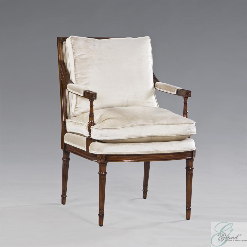 Арт. 33900 Кресло «Kagan» Размер 61*72*95 см (ширина-глубина-высота) Цена 40 800 руб. Удобное кресло в стиле Людовика XVI с рифлеными ножками, подлокотники и изголовье украшены резными розетками. Элегантность и простота позволяет размещать кресло как в холе так и в спальне, гостиной или в офисе.